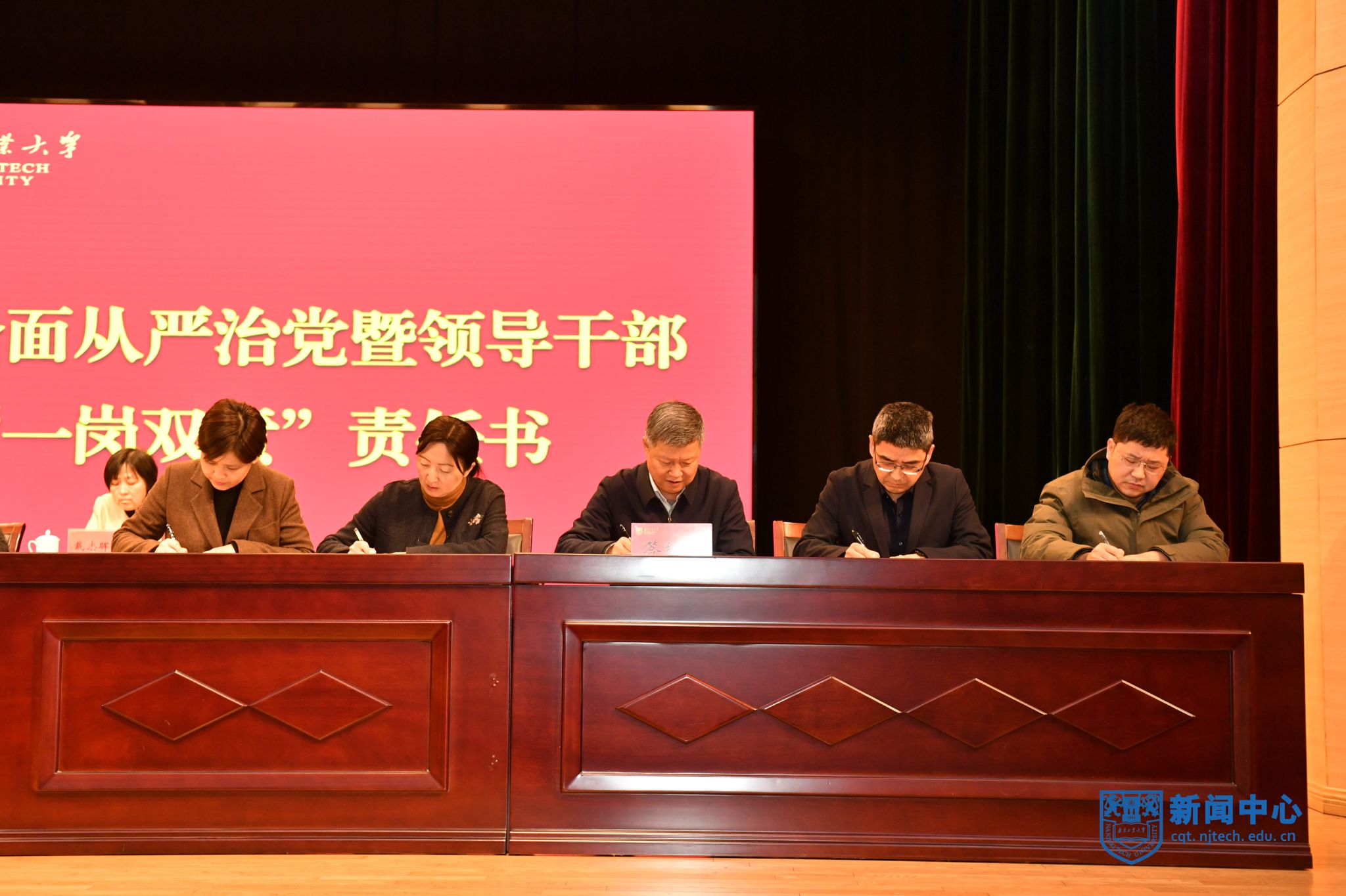 会上,与会人员集体观看了警示教育专题片。校党委书记芮鸿岩与校领导班子成员、二级党组织书记代表签订了全面从严治党暨领导干部“一岗双责”责任书,安全科学与工程学院党委书记喻源、企业党工委书记潘运军、马克思主义学院院长眭国荣、计划财务处处长叶青松作交流发言。