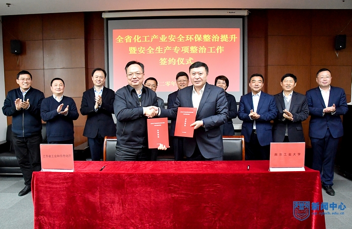 省纪委监委驻厅纪检监察组副组长王旭,省工信厅材料工业处、政策法规处相关人员,校长办公室、科学研究部、化工学院、生工学院、机械学院、安全学院、环境学院、电控学院、南京安元科技有限公司负责人参加了签约仪式。