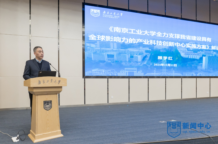 随后,与会嘉宾和校党委书记芮鸿岩、校长蒋军成登台,共同触屏,发布《实施方案》。副校长顾学红代表学校对《实施方案》进行了解读。《实施方案》精准对接我省打造具有全球影响力的产业科技创新中心行动方案,聚焦“实施创新链聚能计划,布局打造产业原创技术策源地”“实施产业链赋能计划,加速技术转移转化和科技创业”“实施人才链蓄能计划,加大产业创新人才引育力度”“实施制度链效能计划,强化政策协同激发创新活力”“实施生态链焕能计划,全方位助推产业创新生态”5大计划,开展25项重点任务,全力支撑我省建设具有全球影响力的产业科技创新中心。