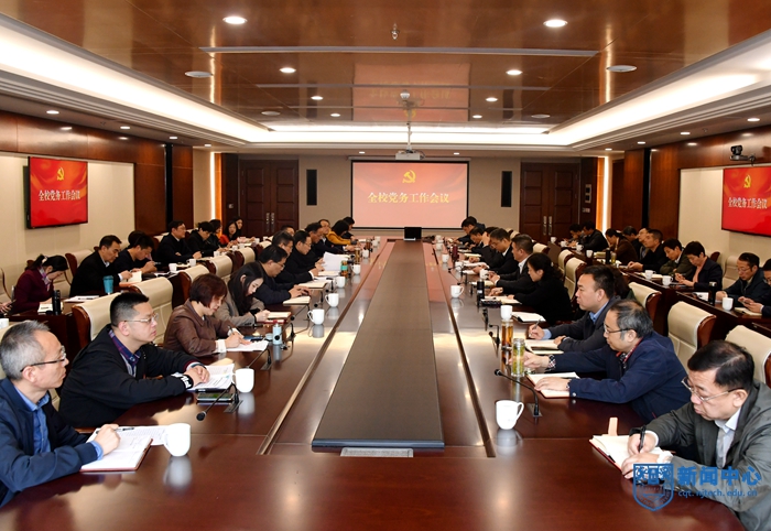 11月19日上午,学校在弘毅楼(国家重点实验室)三楼会议室召开全校党务工作会议。校领导崔益虎、吴胜红、王敦宝出席会议。各党群部门主要负责人、各基层党委(党工委、党总支)书记参加会议。会议由校党委副书记吴胜红主持。