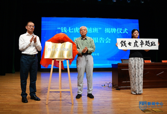 陆伟东介绍了钱七虎院士简历。钱七虎院士与荆晅共同为“钱七虎卓越班”揭牌;荆晅为钱七虎院士颁发“荣誉班主任”证书,现场展示了钱七虎院士亲笔题写的“钱七虎卓越班”“土木学科历史馆”。现场学生为钱院士献花。钱七虎院士,全国工程勘察设计大师、中交公路规划设计院有限公司副总经理王仁贵,教育部高等学校土木工程专业教学指导分委员会副主任委员、清华大学土木工程系主任冯鹏作专题报告。