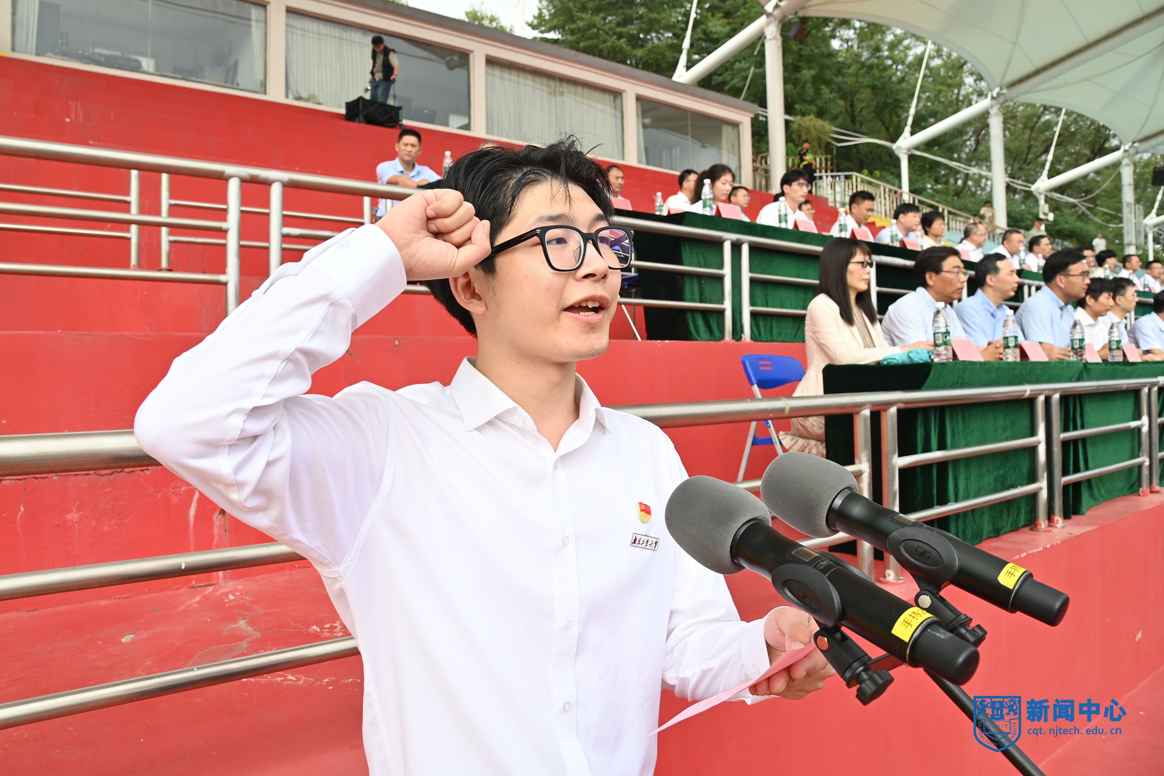在校大学生合唱团倾情献唱《年少有为》《打开》等曲目后,上午8时30分,开学典礼在升国旗唱国歌中正式开始。计算机与信息工程学院(人工智能学院)2025级硕士研究生姜伟带领全体新生进行了庄严的入校宣誓。新生代表、外国语言文学学院英语2501班张纹硕表示,将以青春为笔,以奋斗为墨,共同书写属于新一代南工大人的华彩篇章。在校生代表、柔性电子(未来技术)学院2022级博士研究生禚志强用自己的科研经历激励学弟学妹们,要坚定方向,扎实沉淀,持续创新。教师代表、经济与管理学院博士生导师陈庭强表示,唯有勤奋才能行稳致远,勉励大家要打破学科围墙,拥抱跨界思维,做行动的思考者。校友代表、全国劳动模范、四川华油中蓝能源有限责任公司副总经理张国勇感谢母校的精心培养,寄语新生们心怀感恩、脚踏实地,在奋斗中实现青春价值。中学校长代表、江苏省赣榆高级中学党委书记、校长王经军勉励同学们要做敢闯敢拼的开拓者、勤学善思的追梦人、脚踏实地的奋斗者,成就出彩人生,绽放青春光芒。
