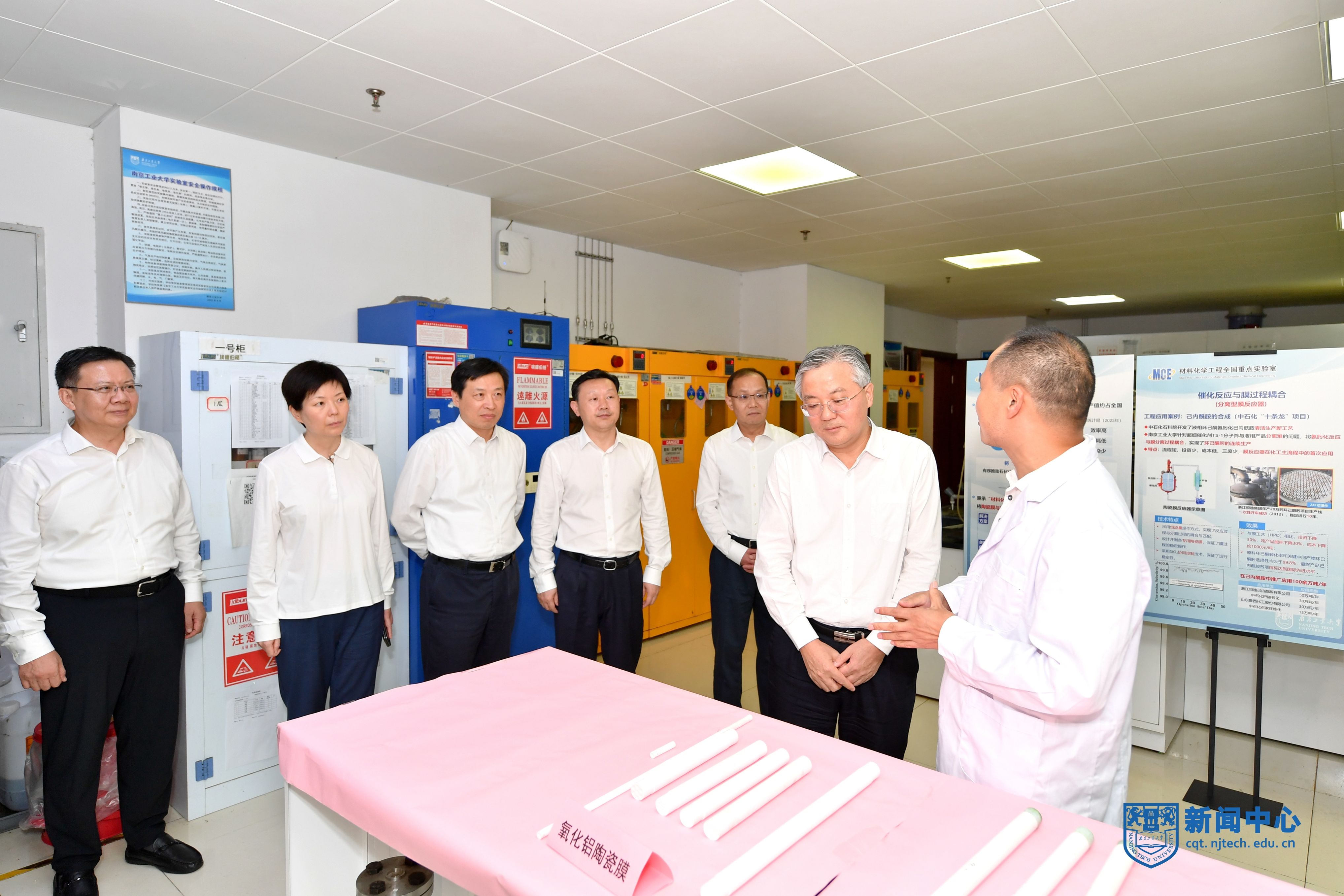 在校领导的陪同下,周红波一行参观了材料化学工程全国重点实验室、国家特种分离膜工程技术研究中心膜反应过程实验室、国家生化工程技术研究中心生物高分子与绿色生物制造实验室和校史馆。周红波与教师代表亲切交流,详细了解科研进展和成果落地转化情况,要求学校进一步勇担使命、打造示范、争创一流。