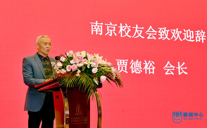 南京校友会贾德裕会长代表承办单位致辞。他向与会嘉宾表示热烈欢迎,并介绍了南京校友会的发展情况和本次年会的筹办过程。