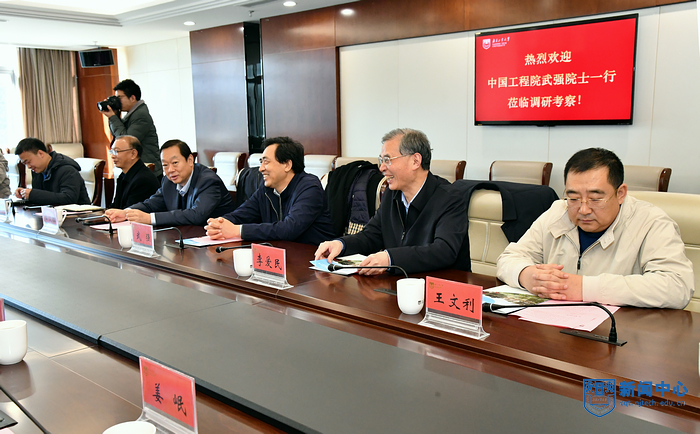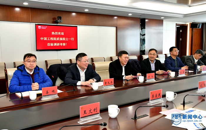 12月4日,中国工程院院士武强,扬子江生态文明创新中心副主任李爱民一行来校考察对接。校长乔旭、副校长凌祥在弘毅楼三楼会议室接待了来宾。