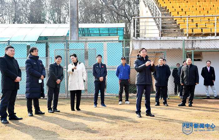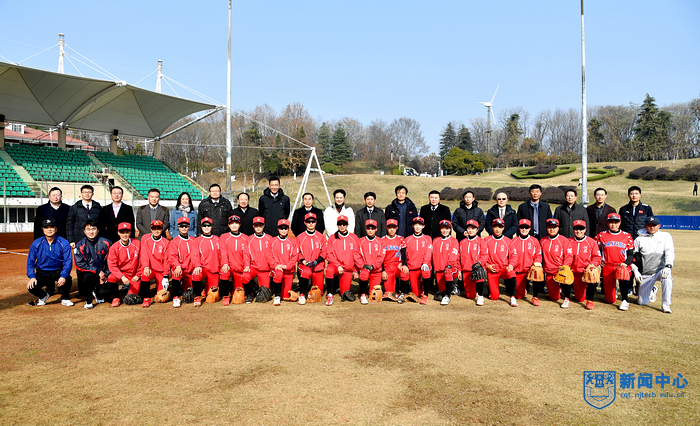 揭牌仪式结束后,领导和嘉宾一同前往体育学院综合楼参观交流并合影留念。随后,前往垒球场看望南工大江苏女垒队员。
