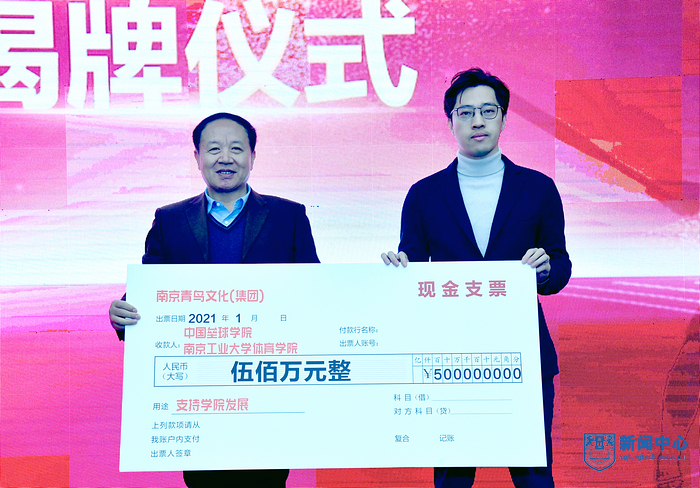 随后,杨旭、李金泉、王伟中、赵志宏共同签署《中国垒球学院共建协议》。李金泉、王伟中、李保平、乔旭共同为体育学院揭牌。郝风林、李业武、陈岩、杨旭、李金泉、王伟中、李保平、乔旭共同为中国垒球学院揭牌。李世收副校长接受南京青鸟文化集团董事长黄青松设立的学院发展基金。杨旭为中国垒球学院院长张天峰颁发聘书。