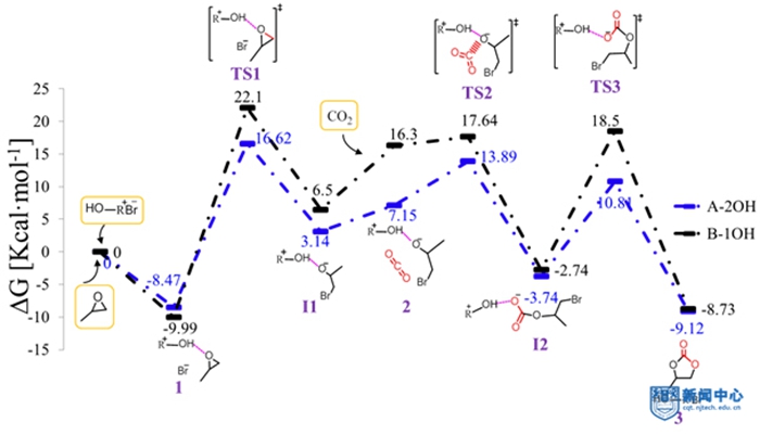 日前,米兰材料化学工程国家重点实验室王军教授和青年教师周瑜副教授在该领域进行了深入的研究并取得了重要进展。他们设计了一种新型的介孔聚离子液体材料,它具有高比表面、高离子位、相邻的双羟基功能化基团,将其作为多相有机催化剂,实现了在常温常压的温和条件下各种环氧化合物与CO2的高效环加成反应。他们和重点实验室的杨晓宁教授课题组合作,进一步采用DFT计算,对催化机理进行了深入剖析,精准揭示了催化剂的多个活性位点及其协同作用。相关成果刊登在催化领域国际权威期刊《ACS Catalysis》(IF=10.614)上,(2017,7, 6770-6780)。研究成果展现了介孔聚离子液体作为一类新兴的有机多孔材料在能源、环境、催化等领域的应用前景,为构筑高效的绿色催化体系提供了新途径。论文第一作者为博士生郭增静,得到了国家自然科学基金、江苏省优势学科建设经费和材料化学工程国家重点实验室开放课题的资助。