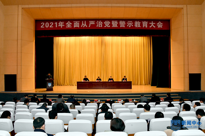 3月5日下午,学校召开2021年全面从严治党暨警示教育大会。在校校领导全体出席会议,党委委员、纪委委员、全体中层干部、各基层党委(党总支、党工委)纪检委员,特约监察员、支部纪检委员代表,有关单位、部门科级干部,重大在研科研项目(课题)负责人等参加会议。会议由校党委副书记崔益虎主持。