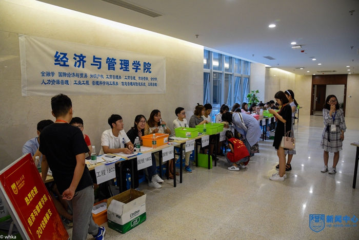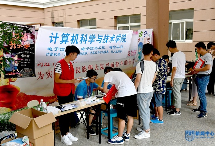 早晨7点,各学院接待点、校内班车乘车点、研究生各宿舍区前已经出现了工作人员的身影,安排班车接送、办理宿舍入住、报到注册、发放材料…,迎新工作紧张而有序地进行。