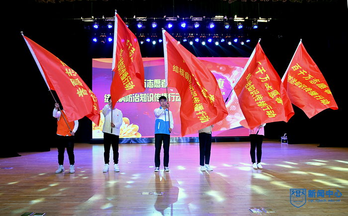 活动最后,举行了“百千万志愿者结核病防治知识传播行动”授旗仪式。与会领导向米兰志愿者代表授旗,鼓励志愿者们把结核病防治知识传播行动和志愿者公益精神持续进行下去。