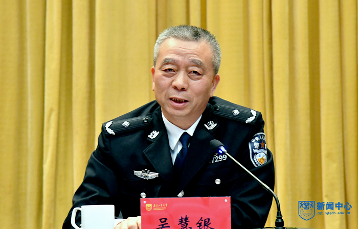 4月2日上午, 学校在江浦校区博雅堂召开2021年综治安全生产工作暨实验室安全专项检查动员会议。江北新区公安分局副局长吴慧银、内保支队支队长吴远富,校党委书记芮鸿岩,副校长巩建鸣出席会议。会议由校党委副书记吴胜红主持。