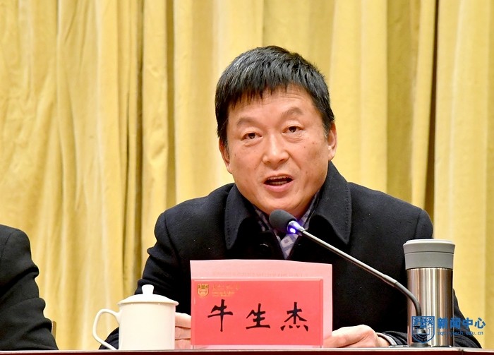 校党委常委、副校长牛生杰宣读《关于表彰2018年度目标考评优秀单位的决定》