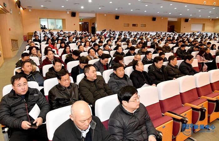 校长乔旭以《以改革勇气打赢改革攻坚战 以创业豪情建好创业型大学》为题做了讲话。乔校长指出,2018年全校师生团结一致、锐意进取,呈现出崭新的工作局面。乔校长强调,各单位、各部门要把第四次党代会确定的工作目标、指标,分解到年度任务中,将创业型大学的理念融入到各个模块的工作中,一要思不足、思目标,促进改革发展精准化;二要聚共识、聚力量,推进学科建设一体化;三要重效益,重效能,提高开源节流精细化;四要立制度、立责任,实现安全环保有效化。
