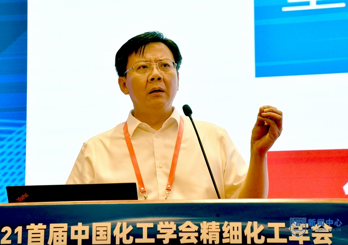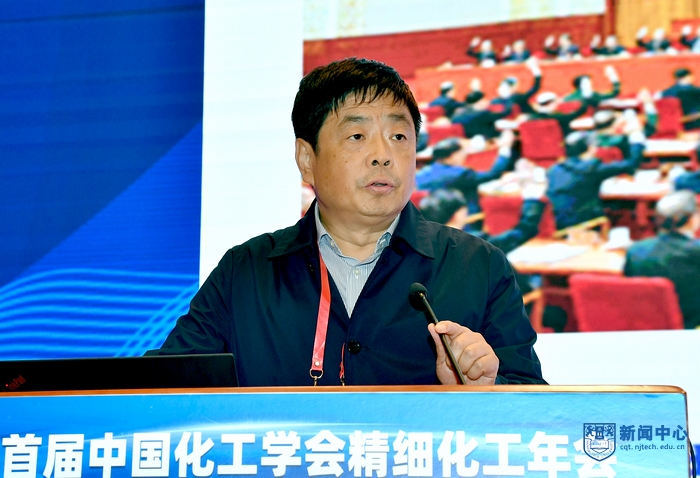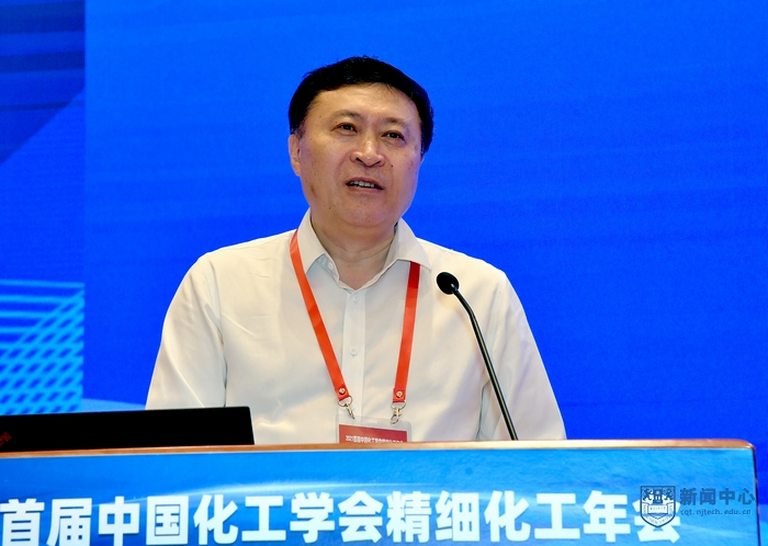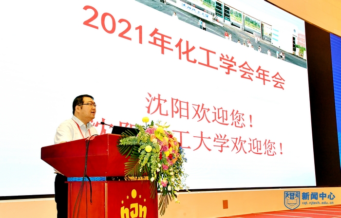校长乔旭教授讲话,并做题为《聚焦碳中和的化工绿色制造技术路径》的大会报告