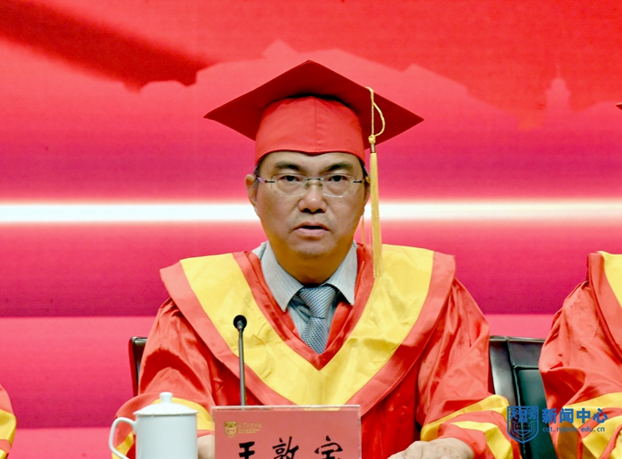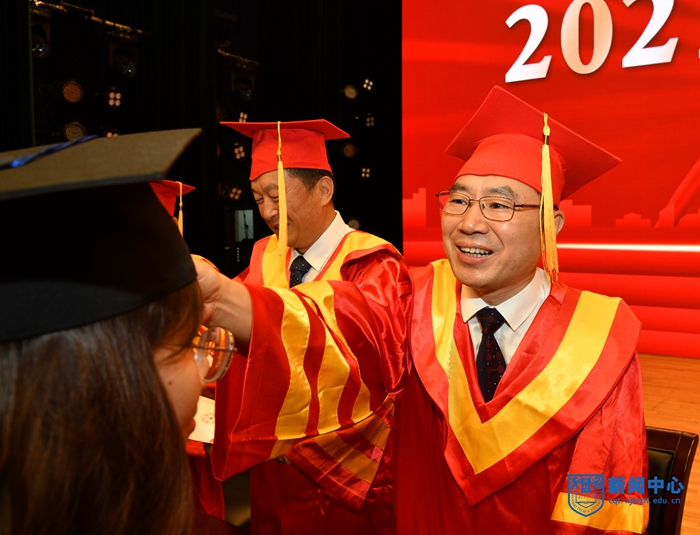 吴胜红副书记主持毕业典礼。他勉励毕业生要不负青春韶华,勇于砥砺奋斗、练就过硬本领、锤炼品德修为,努力成为堪当民族复兴重任的时代新人,为实现第二个百年奋斗目标、实现中华民族伟大复兴的中国梦奉献自己的智慧和力量!祝愿大家鸿鹄高翔、前程远大!捷报频传,人生精彩!