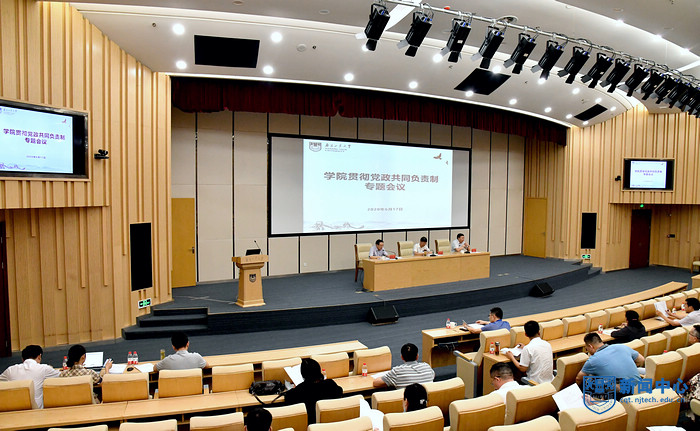 为进一步贯彻落实好学院党政共同负责制、压实责任,不断完善学院党政共同负责制运行机制,6月17日下午,学校在弘毅楼五楼报告厅召开学院贯彻党政共同负责制专题会议。校党委书记芮鸿岩,校长乔旭,校党委副书记崔益虎,党委办公室、校长办公室、党委组织部、党委宣传部、纪委办公室主要负责人,各学院党委(党总支)书记、院长等出席了会议。会议由校党委副书记崔益虎主持。