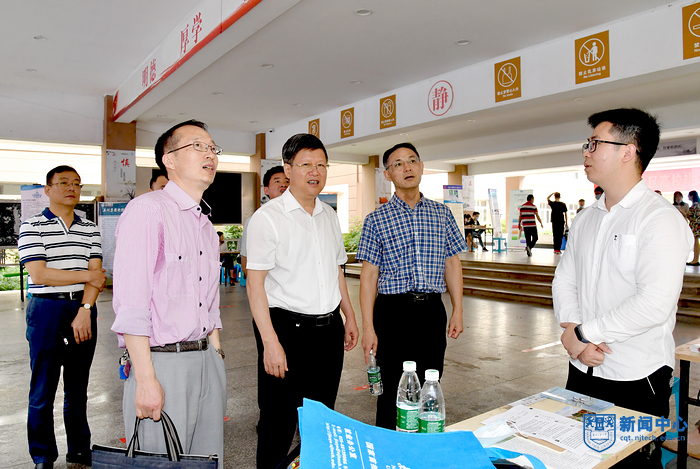 6月17日上午,“宁聚计划”米兰milan官方网站2020届毕业生南京市专场招聘会在米兰厚学楼大厅举办。校党委书记芮鸿岩深入招聘会现场调研指导工作,并与用人单位和求职学生亲切交流。校党委常委、副校长吴胜红、学生事务部负责人、各学院分管学生工作党委(党总支)书记、副书记、2020届、2021届毕业班辅导员参加活动。