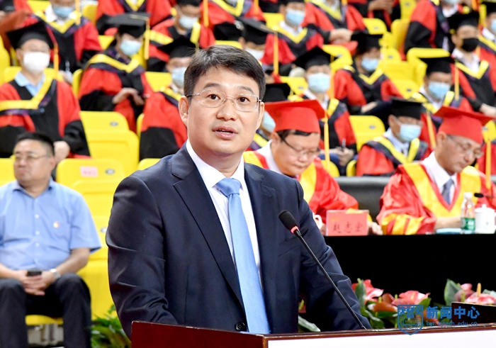 吴胜红副校长主持毕业典礼。他希望毕业生在奋斗中释放青春激情、展现学校风采,展翅高飞也能常回母校看看,祝愿大家鸿鹄高翔、前程远大!