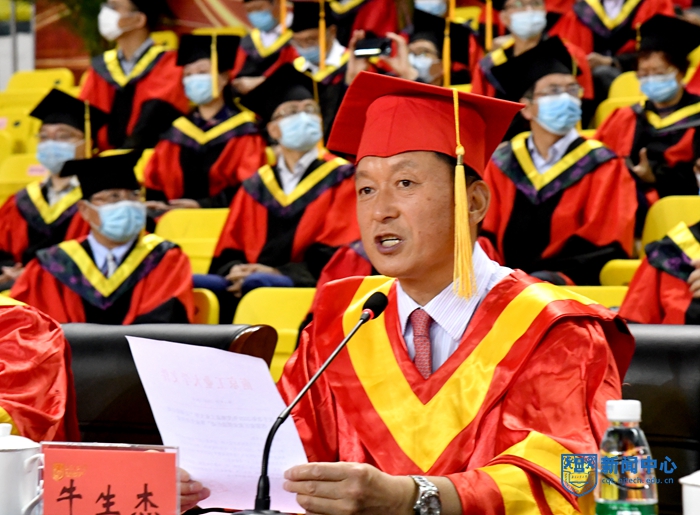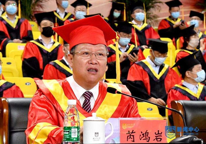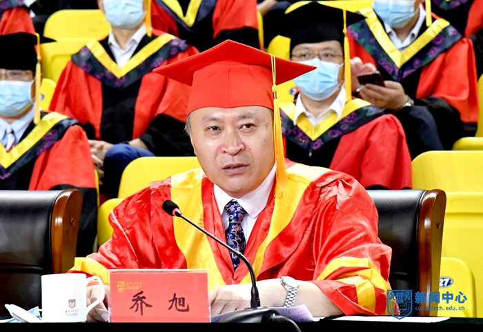 乔旭校长作了题为“在变化中成长,在坚守中致远”的讲话。他从“在变化中成长”“在坚守中致远”两个方面,寄语2020届全体毕业生做好准备,迎接未来的变化和挑战。他希望大家一要驰而不息,在变化中成长。研判形势,变“小我”为“大我”,在不断完善“小我”的同时,把个人理想与命运融入社会、融入国家、融入时代,乘风破浪,实现“大我”;练好内功,变“危机”为“新机”,适时调整认知和定位,扎实培养专业技能的同时,成为“多面手”和“杂学家”;调整观念,变“就业”为“事业”,形成“梯度式就业”的择业观,精准人岗匹配的“职业锚”,练就自己核心竞争力的“金刚钻”。二要久久为功,在坚守中致远。坚守“虽千万人吾往矣”的热忱初心,用笃行拼搏的朝气、探索钻研的好奇、初生牛犊的勇气和向阳而生的豁达,去闯、去拼、去奋斗、去追求;坚守“为有源头活水来”的终身学习,不断探索“书山之路”,努力兼得诗与远方,让创新和实践成为自己行稳致远的“两条腿”和“两把刷子”,多汲取他人和他处的经验,成就自己的人生厚度;坚守“不破楼兰终不还”的创业精神,将扎根大地、砥砺奋斗的学校精神根植于心,延续传承创新创业基因,在各自领域勇立潮头、施展抱负、心怀天下、创就事业,成为学校遍布海内外的最佳代言人。最后,乔校长引用赞格威尔的“所有一切都在变化,唯有变化不变”,殷切希望全体毕业生在未来变得更加自信、丰富、成功、幸福,在变与不变中成就美好人生。