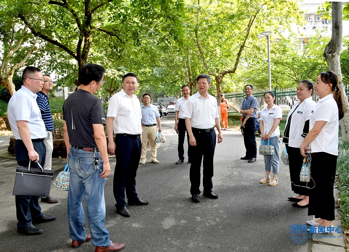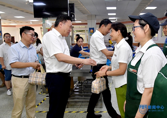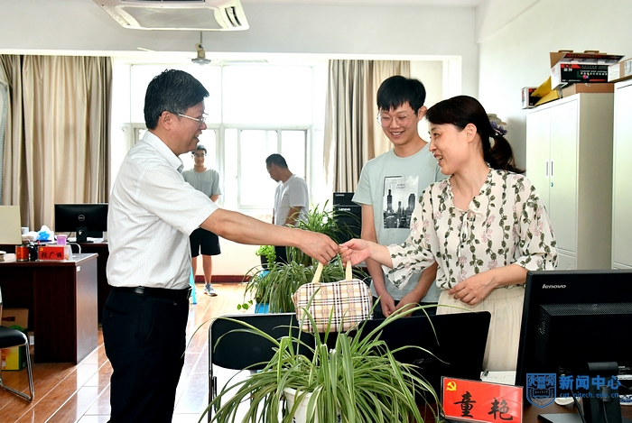 7月15日上午,校领导芮鸿岩、乔旭、吴胜红检查暑期安全工作并慰问了高温下坚守岗位的一线教职工,为他们送上劳保用品并要求相关部门做好防暑降温和安全生产工作。