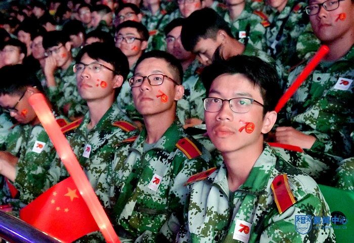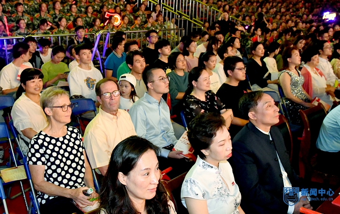 9月24日、25日两晚,米兰“光荣与梦想”庆祝中华人民共和国成立70周年暨2019年迎新晚会在江浦校区体育馆隆重举行。校领导芮鸿岩、乔旭、李世收、邢卫红、吴胜红、凌祥、郝建祥,党委常委、党委组织部部长郭万牛,党委常委、党委办公室主任、党委统战部部长刘大卫,新生军训旅旅长刘良栋上校,副旅长苏融少校、郑鹏上尉,江北新区公安分局内保支队副支队长王敏等领导嘉宾与相关职能部门负责人,各学院分管学生工作党委(党总支)书记、副书记,团委书记,军训教官,新生辅导员,2019级本科生、研究生及留学生代表欢聚一堂,共同观看了演出。