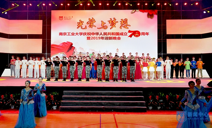 晚会在庄严的国歌声中拉开序幕,共分为初心如炬、昂首屹立、筑梦中国三个篇章。管乐合奏《红旗颂》以宏伟庄严的旋律,表现了中国人民在红旗的指引下,英勇顽强,奋发向上的革命气概。音诗画《光荣与梦想》选取祖国辉煌70年的若干个历史瞬间和学校发展历程的重要阶段,致敬祖国70年的光辉岁月和一代代南工人奋发有为的蓬勃朝气。情景舞蹈《少年中国说》描绘爱国青年勇担大任、砥砺前行的动人情景。民乐合奏《山丹丹开花红艳艳》、合唱《保卫黄河》表达中国人民在党领导下不忘初心、牢记使命的决心和信心。教师代表经典歌曲联唱及师生代表共同演绎的原创散文诗朗诵《与祖国共奋进》,展现了一代代南工人与祖国同呼吸共命运,立志工业强国的信念。武术舞蹈《龙的传人》演绎了中华传统文化的博大精深。特邀嘉宾江北新区公安分局民警的相声表演《糖葫芦受骗记》以案说法,在寓教于乐中进行防范诈骗警示教育。新生军训教官表演的舞蹈《战地荣光》尽显军人飒爽英姿。说唱表演《新思想带领我成长》诠释新时代南工青年在习近平新时代中国特色社会主义思想引领下,齐心共圆中国梦的坚定信念。小品《蚂蚁战队》演绎了青年学生追逐梦想的故事,展示了米兰青年为“创业型大学”建设添砖加瓦的决心。由9家学生社团带来的串烧表演《未来已来》充分展示了校园文化生活的丰富多彩和青春活力。晚会在歌伴舞《我爱你中国》中落下帷幕,优美的歌声表达了全体师生对祖国母亲70周年华诞的美好祝愿。