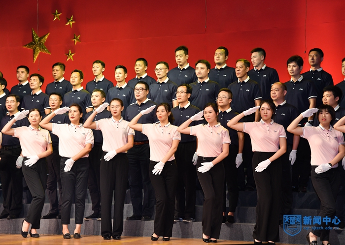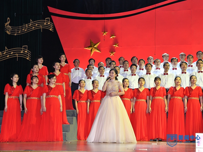 比赛结束后,教工合唱团吴绍静、熊翠蓉、王菲、尤朝阳、周庆、花冬进等老师为现场观众献上经典红歌串烧。