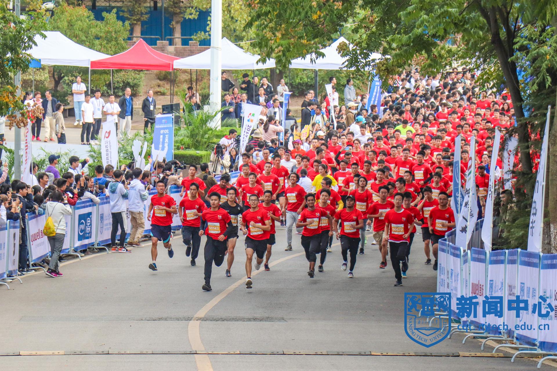 在第五届校园马拉松形象大使——艺术设计学院视觉传达1802级耿万震和测绘科学与技术学院测绘1801级任智欣同学的领跑下,4500余名跑者身着靓丽战袍穿梭于校园赛道,将金秋校园装扮得格外美丽和动感。赛前热身、游戏互动、极限挑战、赛后康复、文化展示等互动板块更让跑者感受到健身魅力,体验到运动快乐。