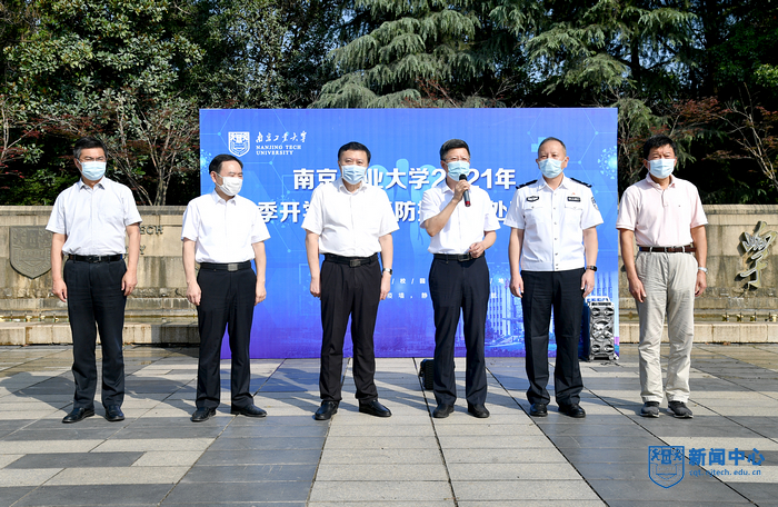 17日上午,学校在江浦校区组织开展秋季开学和疫情防控应急处置演练。党委书记芮鸿岩作动员讲话,校长乔旭宣布演练开始,党委副书记崔益虎担任演练总指挥。校领导牛生杰、王敦宝,南京市江北新区治安支队政委、溯源流调和社区防控组具体负责人周天竹现场观摩指导。