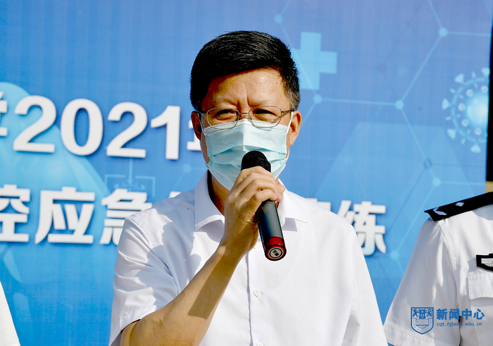 芮鸿岩书记在讲话中指出,全体师生员工要高度重视演练工作,通过真情实景的模拟,进一步提升应急处置能力;要严格落实防控流程,充分掌握工作要求,在演练的过程中进一步完善防控方案,不留死角、不留空白;要提升应急处置能力,通过演练,发现问题、完善方案,加强各个环节的密切配合、协同作战,确保师生健康、校园安全稳定。
