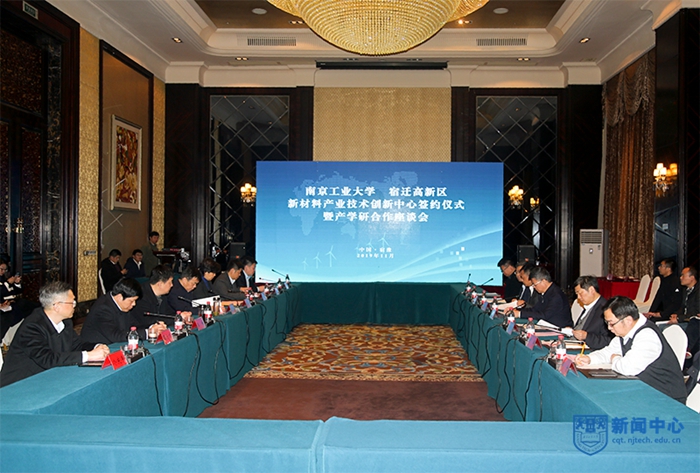 11月27日下午,米兰milan官方网站宿迁新材料产业技术创新中心签约仪式暨产学研合作座谈会在宿迁市举行。校党委书记芮鸿岩,科学研究部部长、自然科学处处长管国锋,材料科学与工程学院院长沈晓冬,宿迁市市委常委、组织部长过利平,科技局局长王峰,宿豫区领导刘海红、温士才、孟凯,高新区管委会副主任冷庆丰与米兰相关学院、职能部门负责人出席签约仪式。签约仪式由宿豫区委常委、组织部长温士才主持。