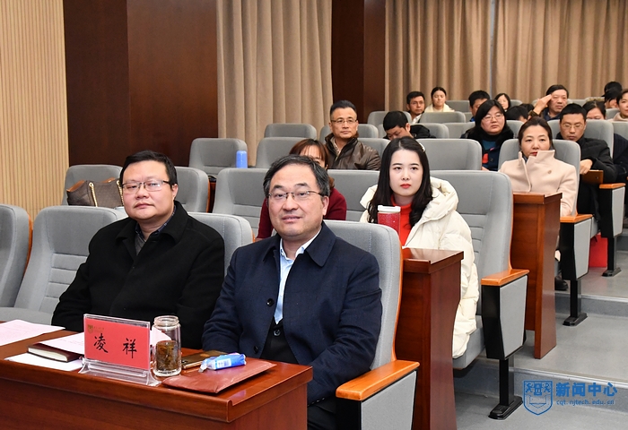 省委主题教育第九巡回指导组成员郭雷、郑苗苗,校党委和行政领导班子成员,近期退出领导岗位的老领导,校机关部门和院系主要负责同志,教授党员代表,教职工党员代表和学生党员代表参加了会议。