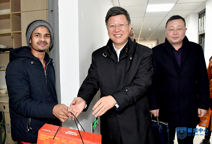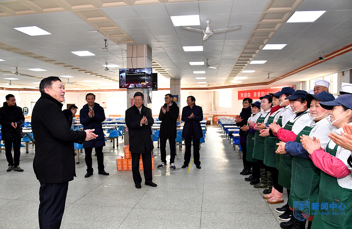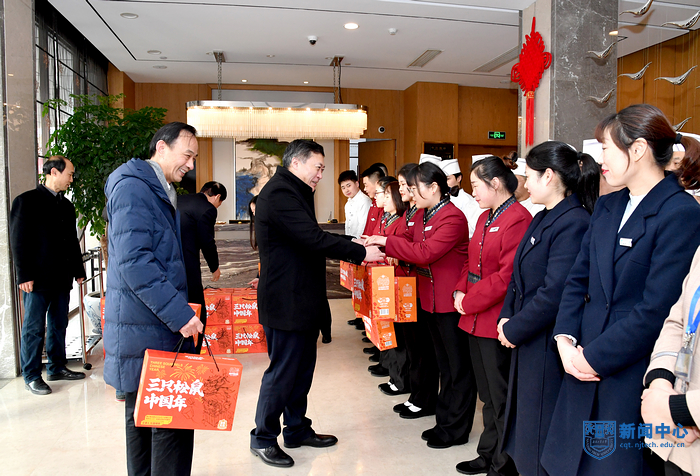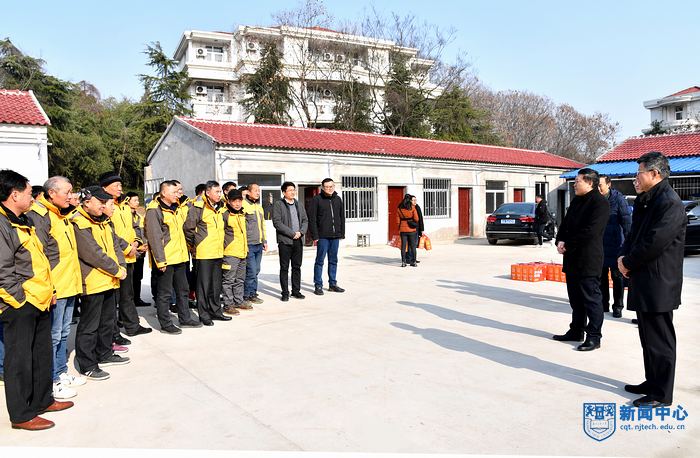 校领导一行先后来到丁家桥校区化学品仓库、先进轻质材料研究中心、智能制造研究院、新模范马路校园物业服务中心、科苑宾馆以及江浦校区南大门、留学生公寓、配电房、校园维修站、东苑食堂、材料化学工程国家重点实验室、学生宿舍工地,看望和慰问假期在校的教职员工,认真了解寒假期间餐饮服务、校园安保、基本建设、综合保障和师生生活等情况。每到一处,校领导对放弃休息,坚守在一线岗位的教职员工表示真挚的感谢,并向他们及家人送上新春的祝福与问候。