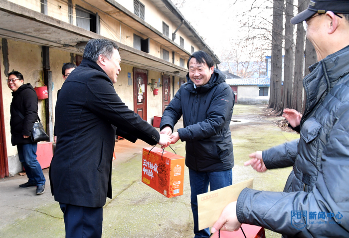 在新春佳节即将到来之际,校领导芮鸿岩、乔旭、吴胜红于1月20日上午率领相关职能部门负责人走访和慰问了寒假期间坚守岗位、辛勤工作的教职员工。