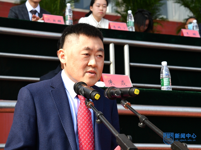 在校生代表、材料科学与工程学院2020级博士研究生沈寅麟用自己的科研经历激励学弟学妹们:“青春不是躺平的等待,奋斗是科研的催化剂”。新生代表、化工学院化工(英才)2102班李玮宁誓言将牢记“明德、厚学、沉毅、笃行”的校训,把星光月色当作背景、把书本笔墨当作挚友,展现青春风采。教师代表、先进材料研究院博士生导师王琳勉励新生实现角色转换、享受多元学习,塑造专业思维、锻炼专业能力,怀抱科学热忱、躬身创新实践、担当时代重任。新生家长代表、生物与制药工程学院2021级硕士研究生吴宇的父亲、南京医科大学第二附属医院副院长吴强表达了作为父辈的期许,希望孩子们珍惜学校提供的资源和机会,不断提高和超越自己,成为一名公忠坚毅、能担大任的青年才俊。优秀生源基地中学校长代表、南京市第一中学校长朱焱与大家分享了自己对“工”和“业”的理解,勉励大家弘扬“忠、诚、精、实”的南工大精神,在开启一段新的学业中,用专业铸就职业能力,将来成就一番事业。校友代表、国家杰出青年基金获得者、苏州大学化工与环境学院副院长严锋深情感谢母校的精心栽培,鼓励新生们以辛勤努力和聪明才智书写出人生最靓丽的诗篇,无愧于青春,无愧于这个伟大的时代。