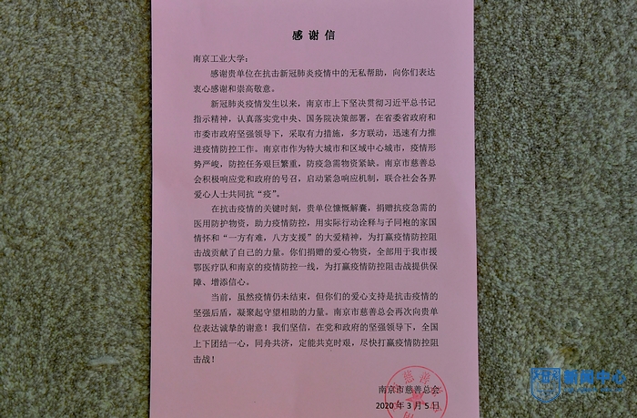 乔旭校长代表学校向南京市慈善总会捐赠物资,陈学荣副会长为其颁发感谢信和捐赠证书。乔旭校长表示,自疫情发生以来,学校积极组织各方力量,通过非洲、欧洲等海外校友会和国内各地校友会,积极开展医用防护口罩和防护服等防控紧缺物资的筹措和采购工作。海外筹措的医用防护紧缺物资历时一个多月,几经辗转,目前已陆续运抵学校。在学校得知到南京疫情防控一线医护人员医用防护物资相对短缺的情况后,立即向南京市有关方面表达了捐赠意愿,为打赢疫情防控总体战、阻击战做出贡献。市人大迅速与市慈善总会及市疫情防控指挥部取得联系,落实学校捐赠事项。此次,米兰milan官方网站为南京疫情防控一线医护人员捐赠物资价值35万元,包括FFP2型医用防护口罩5000只、Type5型医用防护服500件、消毒片20000片等。