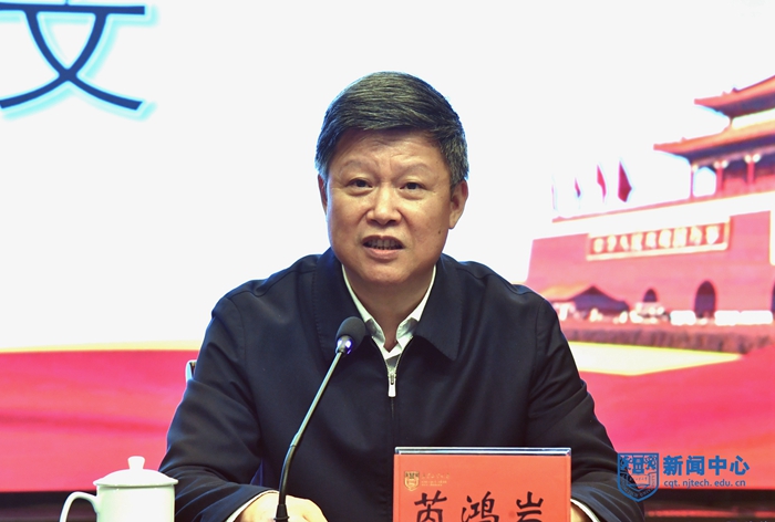 12月16日下午,学校举行党的十九届六中全会精神宣讲报告会。省委宣讲团成员、省社科院党委书记、院长夏锦文应邀来校作宣讲报告。校党委书记芮鸿岩主持报告会。