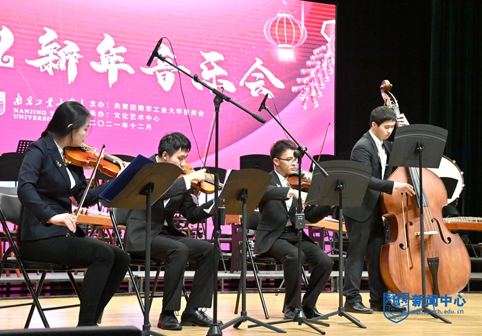 12月29日晚,学校隆重举行2022新年音乐会。校大学生艺术团民乐团、合唱团、交响管乐团联合呈现了一场宏大的音乐盛宴。校党委书记芮鸿岩,党委副书记吴胜红,党委常委、副校长牛生杰,副校长邢卫红,党委常委、宣传部部长张健与师生代表现场欣赏了新年音乐会,近4万名海内外师生校友通过网络直播平台观看了音乐会。