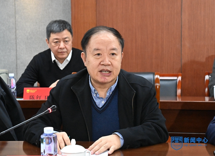 乔旭校长致辞,欢迎林涛副市长、张蕴区长一行的到访。他介绍了学校的历史沿革、办学特色、标志成果,特别是学校在科技成果转化、服务地方经济社会发展等方面的特色做法。乔校长表示,学校高度重视科技成果转化和政产学研合作,希望发挥学校学科与科研优势,在绿色发展、本质安全、生物农业等方面与溧水区深入合作,推动区县级安全标准建设和科技赋能新农村建设,助推乡村振兴,服务溧水区高质量发展。