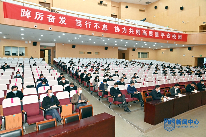 3月17日下午,学校在江浦校区博雅堂召开2022年综合治理暨安全生产工作会议。江北新区公安分局内保支队支队长吴远富,校党委书记芮鸿岩,校长乔旭出席会议。会议由校党委副书记吴胜红主持。