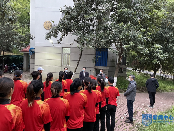 校领导看望结束冬训返校的南工大江苏女垒队员