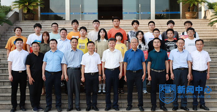 7月27日下午,校党委书记芮鸿岩、副书记吴胜红一行,在学生工作处处长黎能进、2011学院党总支书记米展的陪同下,赴江苏省宜兴中学,为18名2022级新生发放录取通知书。宜兴市人民政府副市长张达志,江苏省宜兴中学校长姚伟荣、副校长钱鹏、张海强、张旻、王震出席发放仪式。