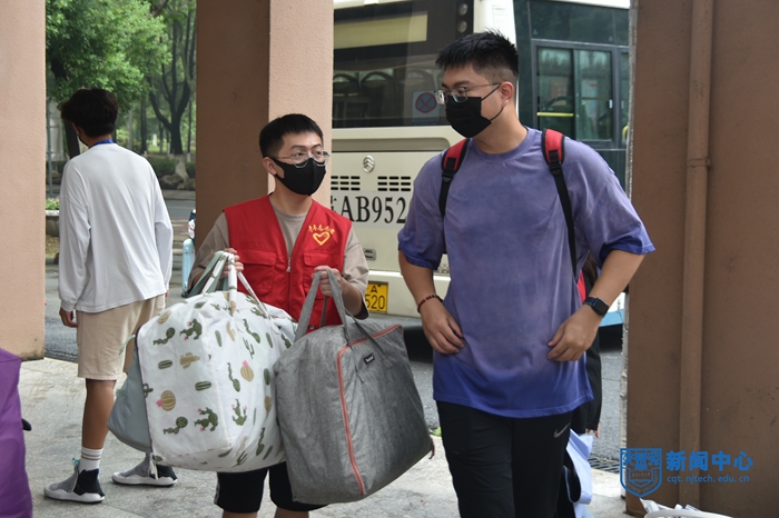 8月27日至28日,学校19806名本科生、研究生返校报到,508名专转本新生入学报到。校领导芮鸿岩、蒋军成、吴胜红、王敦宝、陆伟东、郭万牛、刘大卫一行深入宿舍、食堂、核酸检测点等返校一线看望返校学生,检查指导新生宿舍改造出新情况、疫情防控及秋季学期开学有关工作。