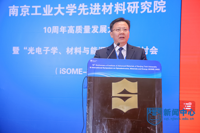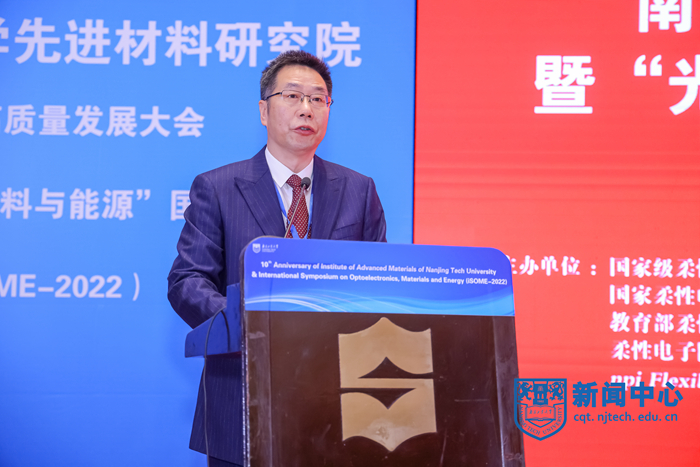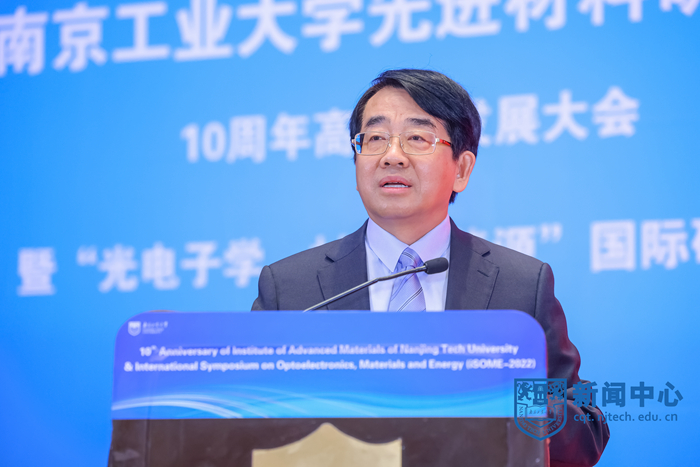 蒋军成校长致开幕辞,他向关心和支持学校事业发展的各位院士专家表示欢迎和感谢。他指出,先进材料研究院在黄维院士的领导下秉承育人初心、肩负求真使命、扎根中国大地、面向科学前沿,在创新人才培养、基础科学研究、重大平台建设、国际交流合作以及服务社会经济发展等方面成效卓著,为学校自然指数、ESI等各项排名的迅速攀升做出了重要贡献。他表示,这次大会既是先进材料研究院高质量发展的重要里程碑,更是迈向未来的历史新起点。学校将一如既往为先进材料研究院的发展提供强有力的支撑和保障,他深信未来十年先进材料研究院将会取得更加辉煌的成就。