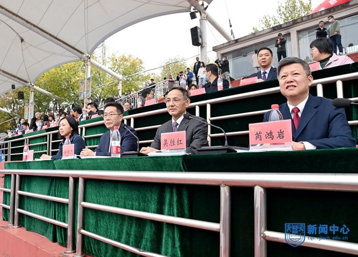 蒋军成校长致开幕辞。他指出,习近平总书记在党的二十大报告中强调,要广泛开展全民健身活动,加快建设体育强国。体育既是国家强盛的应有之义,也是人们健康幸福生活的重要组成部分。体育可以育体、育德,还能育智、育心,在强身健体的同时锻炼意志、磨砺品质,促进人的全面发展。学校高度重视体育工作,南工大江苏女垒夺得全国女子垒球一类赛事“十三连冠”以及全运会“三连冠”,打造“校园马拉松”“健身盛典”等一批特色鲜明的品牌活动,积极营造浓厚的体育文化氛围。蒋校长号召师生们一起奔跑,在运动中凝聚力量,在拼搏中鼓舞干劲,激励全校师生强健体魄、昂扬斗志,把体育精神融入到学习工作生活中,融入到建设特色鲜明国内一流国际知名创业型大学的生动实践中,为热爱而坚持、为梦想去奋斗,在新征程新赛道上跑出加速度、跨越新高度,共同开创更加美好的未来。