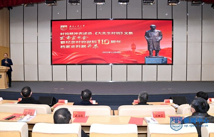 12月8日,学校举办纪念时钧先生诞辰110周年暨时钧精神宣传周首场活动——发布宣介时钧精神表述语、《大先生时钧》文集,展出纪念时钧诞辰110周年档案史料。校党委书记芮鸿岩,校长蒋军成,党委副书记吴胜红,副校长刘大卫、戴志晖,时钧先生外孙女、扬子晚报要闻部副主任林昀等出席活动。刘大卫副校长主持活动。