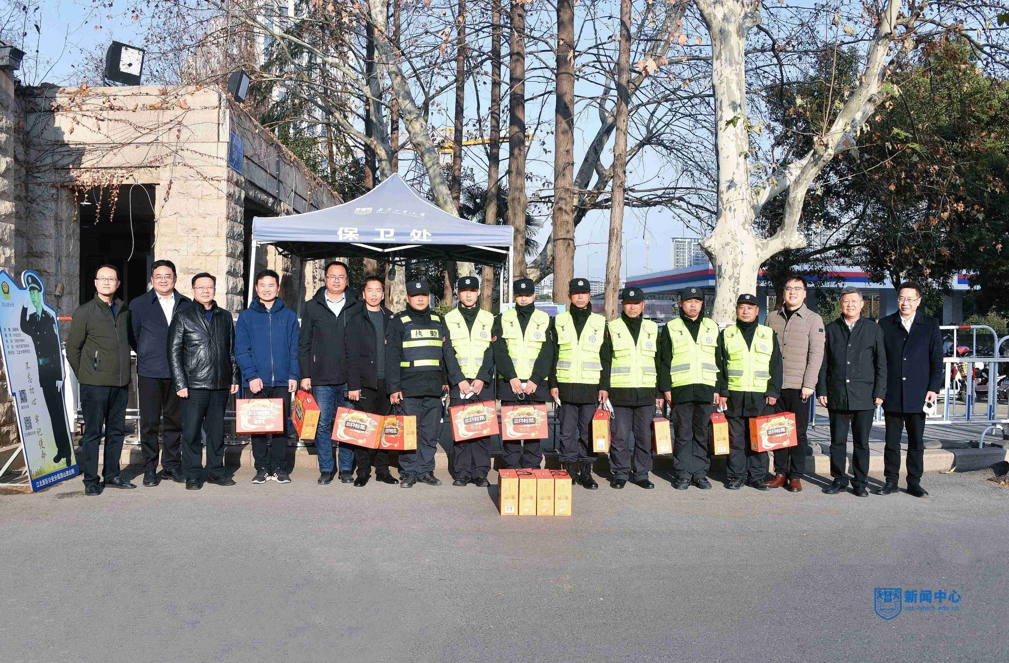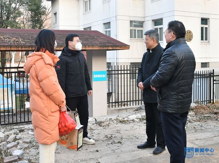1月10日下午,校领导芮鸿岩、蒋军成、邢卫红、陆伟东、郭万牛、刘大卫等走访慰问寒假留校师生和坚守岗位的一线员工。