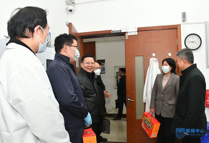 校领导一行深入江浦校区大门、沉毅南楼实验室、水电管理中心、交叉学科楼工地、北苑学生宿舍、东苑食堂等一线进行检查指导,详细了解寒假期间校园安保、实验安全、水电供应、基本建设、餐饮服务等工作的运行保障情况,对假期坚守岗位的教职工表示衷心感谢,并向留校师生送上了亲切问候和新春祝福。