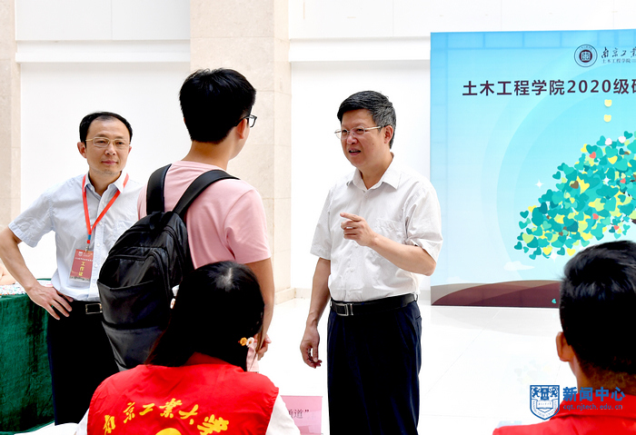 上午,校党委书记芮鸿岩、副书记吴胜红等校领导来到土木、生工、化工等学院的新生接待工作现场,热烈欢迎2020级研究生新生,看望慰问工作人员,仔细询问研究生新生的报到情况,并和办理手续的研究生亲切交流,勉励同学们深刻领会习近平总书记对研究生教育工作的重要指示精神,努力学习,争做具有研究和创新能力的新时代研究生。